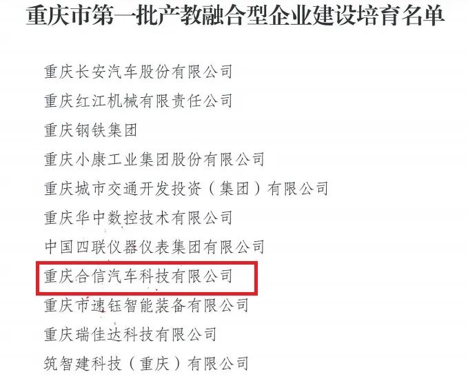 重慶合信汽車科技有限公司產(chǎn)教融合型企業(yè)三年規(guī)劃(2021-2023年)
